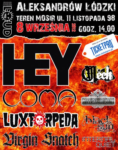 Link do biletów: http://www.ticketpro.pl/jnp/muzyka/rock-pop/896908-summer-dying-loud-hey-coma-luxtorpeda-virgin-snatch-mech-anti-tank-nun-black-sun-internal-quiet.html Link do profilu Facebook: http://www.facebook.com/SummerDyingLoud
