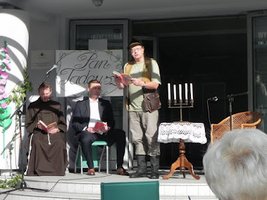 200 lat temu w Soplicowskim dworku rozegrały się sceny z narodowej epopei. W sobotnie popołudnie od godziny 16.00, w taki dworek z Soplicowa zamienił się budynek Biblioteki w Wieluniu. Kolumny przy wejściu do budynku ozdobiono kolorowymi malwami i zieloną winoroślą. Podest biblioteki stał się w werandą dworku, na której wybrane fragmenty poematu wśród czerwonych pelargonii czytali: franciszkanin Ojciec Igor, dziennikarz Pan Waldemar Kozera, aktor z Koła Teatralnego działającego przy MiGBP w Wieluniu Pan Marek Berger. Akcję „Narodowego czytania Pana Tadeusza” w Wieluniu zakończył Epilog w wykonaniu Burmistrza Wielunia Pana Janusza Antczaka.