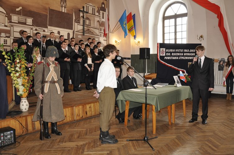 Akademia rozpoczęła się słowno-muzycznym występem, podczas którego można było zapoznać się z wydarzeniami sprzed 150 lat. Występ wsparty był prezentacja multimedialną, a także krótką inscenizacją historyczną, ukazującą proces sądowy pojmanego do niewoli powstańca.