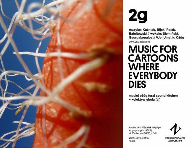 26 maja 2012, godz. 21:03 odbędzie się performance audio-wizualny pod nazwą "Music for Cartoons Where Everybody Dies". Bilety można rezerwować w Akademickim Ośrodku Inicjatyw Artystycznych, gdzie odbędzie się spotkanie, lub przez inernet.