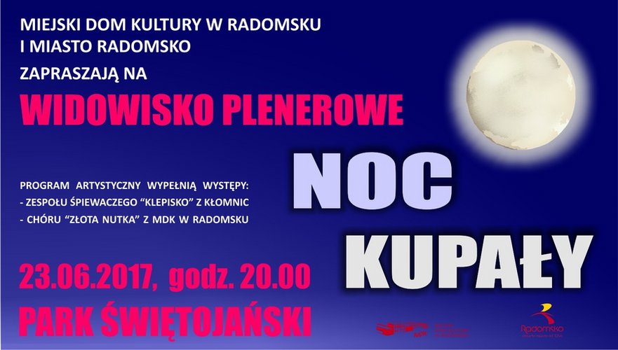Miejski Dom Kultury w Radomsku i Miasto Radomsko zapraszają mieszkańców miasta 23 czerwca 2017 r. o godz. 20.00 do Parku Świętojańskiego na „Noc Kupały”.
