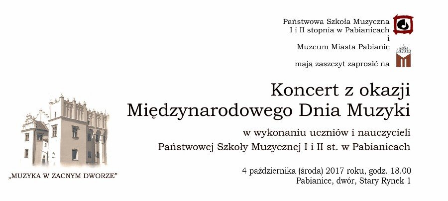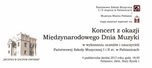 04.10 (środa) - "Koncert z okazji Międzynarodowego Dnia Muzyki" w wykonaniu uczniów i nauczycieli Państwowej Szkoły Muzycznej I i II st. w Pabianicach.