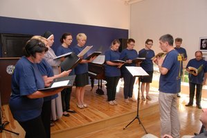 Kolejnym punktem programu był występ chóru z parafii świętego Józefa w Wieluniu pod dyrekcją Jakuba Jurdzińskiego. Chór wykonał kilka utworów o treści religijnej, w tym pieśni poświęcone Matce Bożej. Po dużej dawce doznań artystycznych goście przeszli do sali wystaw czasowych. Czekał na nich zaaranżowany pochód pielgrzymów zmierzających do sanktuarium Czarnej Madonny. Wśród manekinów, ubranych w stroje ludowe regionu wieluńskiego, znajdują się feretrony oraz chorągwie, które były niesione przez pielgrzymów w okresie międzywojennym. Część z nich kupiono w czasie takich pielgrzymek jak np. feretron z 1922 r. będący własnością klasztoru oo. Franciszkanów w Wieluniu. Pochód pielgrzymów uzupełniają zdjęcia grup pątniczych z całego terenu ziemi wieluńskiej pod szczytem jasnogórskim. Najstarszym zdjęciem na wystawie, to grupa pielgrzymów z Wielunia z 1906 r. Fotografie współczesnych pielgrzymek z ziemi wieluńskiej zostały zaprezentowane na ekranie telewizora.