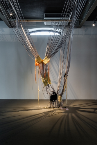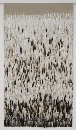 Ostatnim nabytkiem jest praca autorstwa C.T. Jasper i Joanny Malinowskiej „Ptaki egzotyczne” prezentowana podczas pokazu specjalnego „Dialogi – poza granicami”, towarzyszącego 16. Międzynarodowemu Triennale Tkaniny. C. T. Jasper i Malinowska to znani na arenie międzynarodowej i powszechnie cenieni artyści sztuk wizualnych, którzy reprezentowali Polskę na Biennale Sztuki w Wenecji w 2015 r. Ich praca łączy w sobie wątki odległych kultur. Tytułowe egzotyczne ptaki odnoszą się do wyrafinowanych tunik z ptasich piór południowoamerykańskiego ludu Chimú (XV–XVII wiek), jednak tu artyści wykorzystali pióra ptaków występujących na terenie Polski, zebrane na ulicach, w parkach, na plaży. Chcieli przez to wyrazić przekonanie, że współcześnie, w świetle panujących nastrojów społecznych, fascynacja egzotyką schodzi na dalszy plan wobec lęku przed innością, który prowadzi niekiedy do agresji.