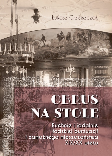 Podczas spotkania będzie możliwość zakupu książki „Obrus na stole. Kuchnie i jadalnie łódzkiej burżuazji i zamożnego mieszczaństwa XIX-XX wieku” autorstwa dr. Łukasza Grzejszczaka, której współwydawcą jest Wojewódzka Biblioteka Publiczna w Łodzi. Książka poświęcona jest obyczajowości łódzkiej burżuazji i zamożnego mieszczaństwa. Te grupy społeczne stworzyły własny, indywidualny styl życia naśladujący panujące od wieków i ugruntowane zasadami savoir-vivru wzorce arystokratycznego zachowania. Dominowała w nich chęć autoprezentacji nie ograniczająca się jedynie do budowania finansowej potęgi danej rodziny, ale przekładająca się na całą sferę życia codziennego, wzory konsumpcji, czy sposoby spędzania wolnego czasu. Istotną rolę odgrywały także spotkania towarzyskie skupione przy wspólnym stole w zaciszu mieszkań, rezydencji, czy majątków ziemskich. Na kartach książki zaglądamy do okazałych reprezentacyjnych kamienic, willi oraz pałaców, wchodząc do dwóch najważniejszych domowych pomieszczeń – kuchni i jadalni. Przyglądamy się na przestrzeni lat 1890-1939 sposobom ich urządzenia i wyposażeniu dobranym zgodnie z zasadami obowiązującej mody oraz stylistyki artystycznej. Czytamy o tym jak kolorystyka pomieszczeń, meble, bielizna stołowa, porcelana, szkło, zastawa srebrna i platerowana, zasady etykiety tworzyły oprawę dla wyznaczanych przez rytm dni celebrowanych wówczas spotkań towarzyskich. Reprezentacyjnych ślubnych śniadań, obiadów, czy kolacji przeciągających się często do bladego świtu oraz kameralnych podwieczorków kryzysowych lat 30. XX wieku. Odnajdujemy tutaj znanych bohaterów, reprezentantów rodzin Scheiblerów, Herbstów, Grohmanów, Poznańskich, Biedermannów, Kindermannów i innych.