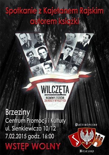 Kajetan Rajski autor książki zawierającej kilkanaście wywiadów z potomkami Żołnierzy Wyklętych będzie gościł 7 lutego br. o godz. 16 w Centrum Promocji i Kultury w Brzezinach. Spotkanie zorganizowane jest przez członków stowarzyszenia Patriotyczne Brzeziny. Wstep wolny!