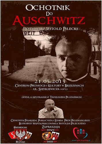 Ochotnik do Auschwitz Rotmistrz Witold Pilecki to tytuł spotkania, które odbędzie się 21 maja o godz. 19.00 w Centrum Promocji i Kultury w Brzezinach. Prowadzący: Tadeusz Płużański - ceniony pisarz, publicysta, autor książki "Bestie" zawierającej zapis śledztwa ws. funkcjonariuszy stalinowskich.