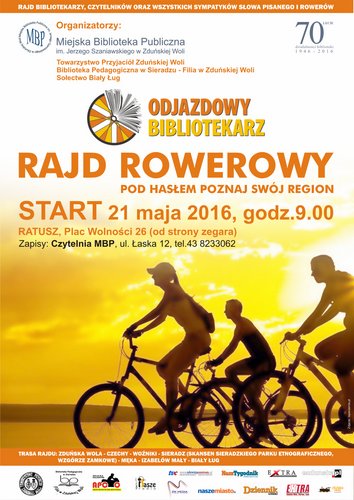 Miejska Biblioteka Publiczna im. Jerzego Szaniawskiego w Zduńskiej Woli, Biblioteka Pedagogiczna w Sieradzu Filia w Zduńskiej Woli, Towarzystwo Przyjaciół Zduńskiej Woli oraz Sołectwo Biały Ług zapraszają na kolejną edycję rajdu rowerowego Odjazdowy Bibliotekarz pod hasłem „Poznaj swój region”: Zduńska Wola – Woźniki - Sieradz (Skansen Sieradzkiego Parku Etnograficznego, Wzgórze Zamkowe, Rynek) – Izabelów Mały – Biały Ług. Start 21 maja o godz. 9.00.