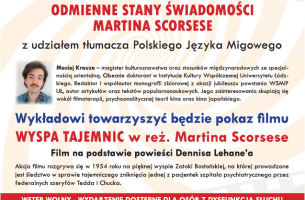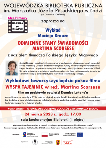 Klub Filmowy „Klatka po klatce” w Wojewódzkiej Bibliotece Publicznej im. Marszałka Józefa Piłsudskiego w Łodzi zaprasza na wykład Pana Macieja Krauze pt. „Odmienne stany świadomości Martina Scorsese”.