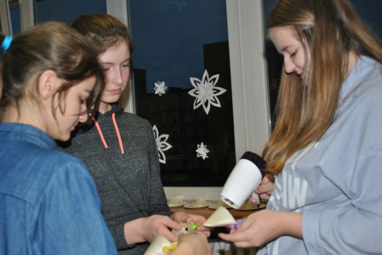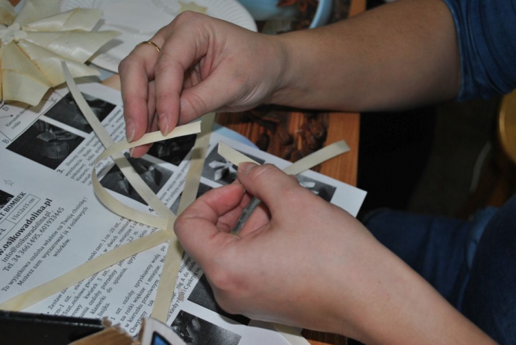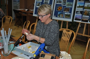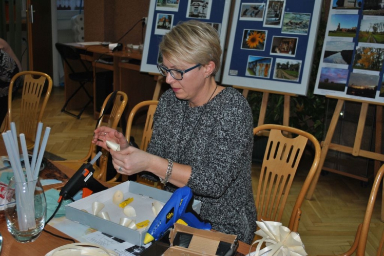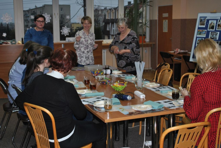 Większość osób uczestniczyła już we wcześniejszych warsztatach, więc technika składania poszczególnych części była Paniom już znana. Po zakończonych zajęciach wszystkie Panie wyszły z pięknymi świątecznymi ozdobami.Organizatorki warsztatów artystycznych: Agnieszka Kowalska, Malwina Andrzejczak, Kamila Adamiec i Katarzyna Skopiak składają wszystkim tegorocznym uczestnikom najserdeczniejsze życzenia Bożonarodzeniowe i życzą Szczęśliwego Nowego 2018 Roku.