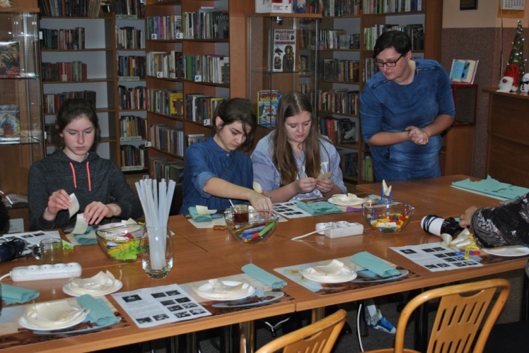 14 grudnia w Miejskiej i Powiatowej Bibliotece Publicznej w Łęczycy odbyły się kolejne warsztaty artystyczne pt. „Osikowe ozdoby”. Uczestniczki zajęć tym razem własnoręcznie wykonały świąteczną bombkę i dzwonki z drzewa osikowego.