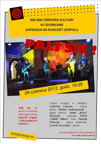 Wielbicieli muzyki reggae zapraszamy do Ozorkowa na koncert zespołu PALI SIĘ ! Koncert odbędzie się 29 czerwca o godz. 19.00 w Miejskim Domu Kultury.