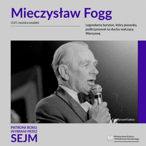 Mieczysław Fogg – w 125. rocznicę urodzin pieśniarza w uznaniu dla jego dorobku artystycznego, zasług dla promocji kultury polskiej na świecie, a także patriotyzmu i postawy, jaką prezentował m.in. w czasie niemieckiej okupacji z okresu II wojny światowej i Powstania Warszawskiego. Artysta, który był synem sklepikarki i kolejarza, sprzedał ponad 25 milionów płyt, dał kilkadziesiąt tysięcy koncertów w Polsce i za granicą (w 25 krajach świata), a w repertuarze miał ponad 2 tysiące utworów. Fogg stał się ambasadorem kultury polskiej na świecie, jednym z bardziej rozpoznawalnych jej przedstawicieli.