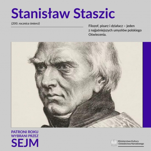 Stanisław Staszic – w 200. rocznicę śmierci oświeceniowego pisarza i naukowca, wybitnego Polaka, który swoim życiem wpłynął na dzieje Polski. Był pionierem spółdzielczości, pisarzem politycznym i publicystą, filozofem i tłumaczem, przyrodnikiem, księdzem katolickim, członkiem Izby Edukacyjnej Księstwa Warszawskiego, ministrem stanu Księstwa Warszawskiego, ministrem stanu Królestwa Polskiego – jednym z najwybitniejszych przedstawicieli polskiego oświecenia.