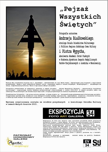 Foto Art Galeria EKSPOZYCJA 34, mieszcząca się w bramie zabytkowej kamienicy przy ulicy Zduńskiej 34 w Łowiczu, w miesiącu maju, zaprasza na wystawę fotografii pt. „Pejzaż Wszystkich Świętych” autorstwa Andrzeja Białkowskiego, etnologa Działu Dziedzictwa Kulturowego i Folkloru Regionu Łódzkiego Domu Kultury i Piotra Wypycha, absolwenta Akademii Sztuk Pięknych w Krakowie, dyrektora Zespołu Nadpilicznych Parków Krajobrazowych z siedzibą w Moszczenicy.