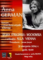 Podczas koncertu „Piosenki Anny German”, który odbędzie się 31 sierpnia 2014 r. o godz. 19.00, na scenie muszli koncertowej w parku Błonia w Łowiczu, usłyszymy m.in. Tańczące Eurydyki, Zakwitnę różą, Człowieczy los, Wróć do Sorrento oraz wiele innych. Koncert poprowadzi Janusz Janyst, który przedstawi wspomnienia i anegdoty związane z Anną German.