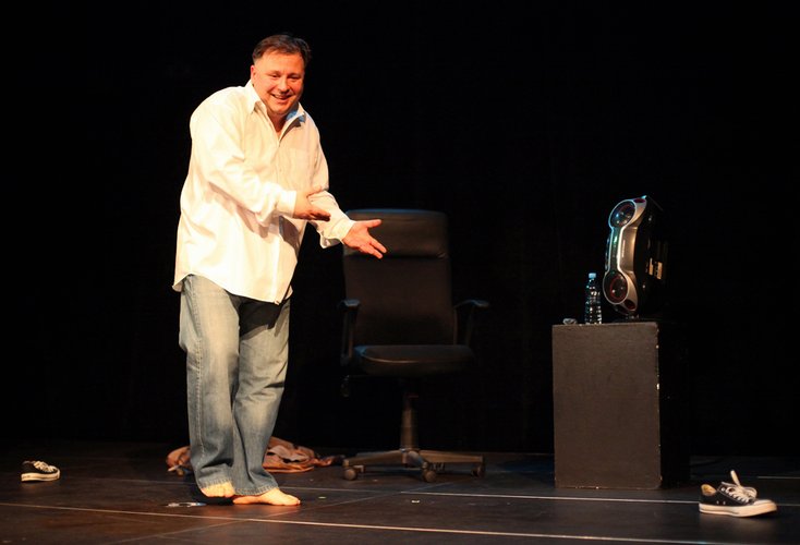 Skierniewice to ostatnie z miast regionu łódzkiego spoza stolicy województwa, w którym gościła tegoroczna edycja Łódzkich Spotkań Teatralnych. W piątek, 30 listopada, na scenie skierniewickiego Miejskiego Ośrodka Kultury, w ramach festiwalu, Tomasz Boruszczak zaprezentował monodram „Aria dla Algernona”. Oparty na powieści Daniela Keyes’a „Kwiaty dla Algernona”, wyreżyserowany przez Andrzeja Czernego, spektakl to poruszająca do głębi historia Charlie’go Gordona, upośledzonego umysłowo (jego iloraz inteligencji wynosi 68) pomocnika piekarza, który zostaje poddany pewnemu eksperymentowi, mianowicie operacji „reperacji” inteligencji. W jej efekcie staje się, jak o nim mówią ci, którzy przeprowadzili na nim ów eksperyment, kretynem-geniuszem. Wspina się na wyżyny inteligencji niedostępne nawet profesorom uniwersyteckim. Tytułowy Algernon to z kolei laboratoryjna mysz, która podobnie jak Charlie została poddana eksperymentowi „reperacji”. Początkowo zwierzę traktowana przez mężczyznę z niechęcią, z czasem staje się jego jedynym przyjacielem. Jest on dla niego również swoistą, medyczną zapowiedzią tego, co z czasem stanie się z nim samym. A stanie się, to co nieuniknione. Efekty eksperymentu nie są wieczne. Następuje regres. Początkowo objawiający się tylko jako napady agresji, z czasem przeistaczający się w amnezję, niemożność wykonywania najprostszych czynności intelektualnych czy spadek motoryki. Algernon wpada w katatonię, następnie umiera. Charlie z geniusza przeistacza się ponownie w dziecięco naiwnego analfabetę. Wraca do punktu wyjścia.