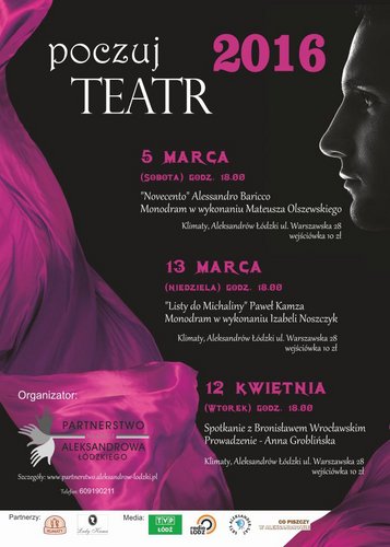 Partnerstwo na Rzecz Aleksandrowa Łódzkiego zaprasza na kolejny spektakl projektu „Poczuj teatr” – „Listy do Michaliny” monodram w wykonaniu Izabeli Noszczyk, aktorki Teatru Jaracza w Łodzi. Spektakl ten to ciepła i wzruszająca, acz niepozbawiona elementów komizmu, opowieść o dojrzałej kobiecie, która, wierząc w swoją umiejętność docierania do serc i umysłów innych ludzi, postanawia pomagać im w rozwiązywaniu trudnych sytuacji życiowych prowadząc tzw. coaching rozwodowy.
