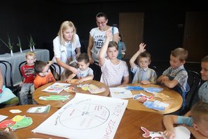 Dodatkową atrakcję stanowiły warsztaty z dietetykami: mgr Kariną Skurą i Eweliną Szymczyk z Centrum Dietetycznego Natur House w Radomsku. Podczas wspólnej zabawy z dziećmi, Panie opowiedziały o "talerzu zdrowia" i wpływie sportu na nasze dobre samopoczucie i kondycję. Wszystkie dzieci otrzymały po zajęciach drobny upominek.