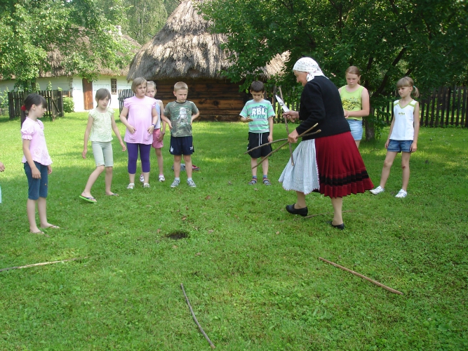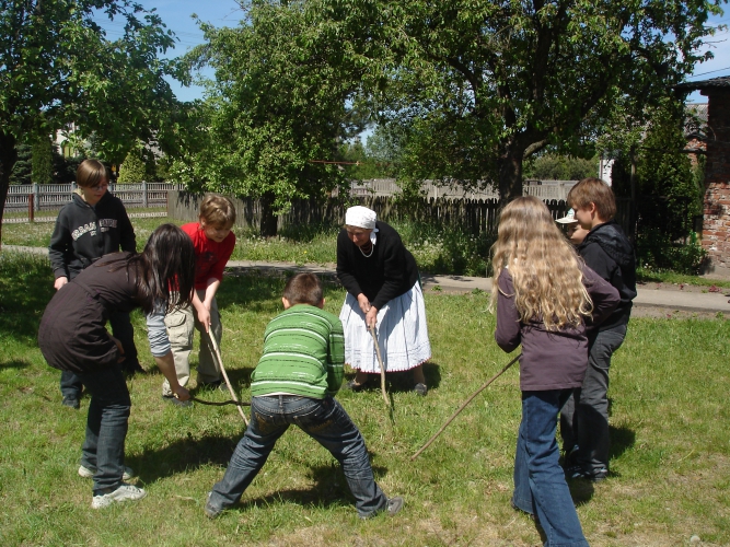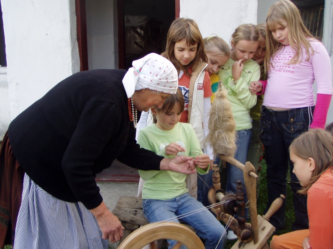 pokaz przędzenia na podwórku u p. Bednarek w ramach pr.Krzesiwo