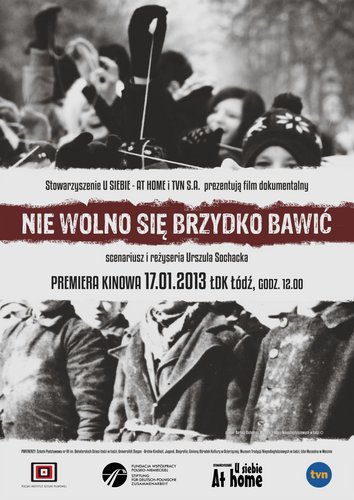 W związku ze zbliżającą się 68. rocznicą wyzwolenia Łodzi, Łódzki Dom Kultury i Stowarzyszenie U SIEBIE – AT HOME zapraszają na premierę filmu dokumentalnego „NIE WOLNO SIĘ BRZYDKO BAWIĆ” w reżyserii Urszuli Sochackiej. Projekcja odbędzie się 17 stycznia o godz. 12.00 w Kinie Studyjnym Łódzkiego Domu Kultury, ul. Traugutta 18.