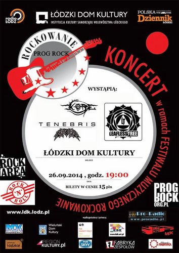 W oczekiwaniu na kolejną edycję Festiwalu Rockowanie Łódzki Dom Kultury proponuje cykl niezwykłych koncertów. Na początek, 26 września, odbędzie się wieczór z muzyką prog-rockowo-metalową. Na scenie pojawi się wracająca po krótkiej przerwie grupa LEAFLESS TREE, a także legenda łódzkiego prog-metalu zespół TENEBRIS i warszawska grupa KORE. Koncert rozpocznie się o godz. 19.00. Bilety w cenie 15zł do nabycia przed koncertem. Zapraszamy!