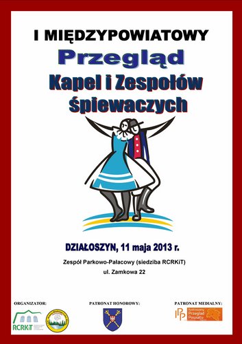 Regionalne Centrum Rozwoju Kultury i Turystyki z/s w Działoszynie oraz Lokalna Grupa Działania „Kraina Wielkiego Łuku Warty” zapraszają do udziału w I Międzypowiatowym Przeglądzie Kapel i Zespołów Śpiewaczych. 11 maja br., Zespół Parkowo-Pałacowy w Działoszynie.