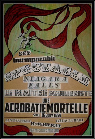 Charles Blondin, francuski ekwilibrysta i akrobata, swą sławę i fortunę zawdzięczał śmiałemu pomysłowi przejścia nad wodospadem Niagara po linie o długości 330 metrów, rozpiętej na wysokości 48 metrów nad powierzchnią wody. Po raz pierwszy dokonał tego wyczynu w roku 1859, a następnie powtarzał go szereg razy, za każdym razem w innym wariancie widowiskowym: z zawiązanymi oczami, w worku, pchając przed sobą taczkę, zatrzymując się w połowie drogi, aby przyrządzić i spożyć omlet, na szczudłach itd…