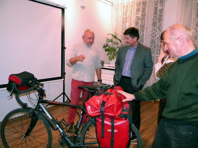 Rekwizytem budzącym największe zaineresowanie obecnych na spotkaniu stał się rower Piotra Kolendy, którym od wielu lat podróżuje po świecie, i który tak dzielnie zniosił chociażby pułapki zastawiane przez pustynne akacje. Spotkanie "Kolory Maroka" zakończyły dedykacje, które podróżnik wpisywał wszystkim zainteresowanym jego książkami: " Na dwóch kołach dookoła złotego Lenina" oraz "Nordkapp. Kolarska mekka".