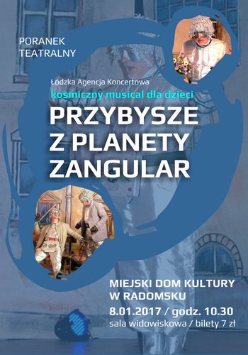 Przybysze z Planety Zangular” to widowisko teatralno - muzyczne adresowane do młodego widza z licznymi efektami wizualnymi i muzyką. Głównymi bohaterami tej historii są kosmici. Lądują na ziemi w poszukiwaniu pewnego tajemniczego elementu, bez którego umiera życie na ich planecie. Spotykają na swojej drodze różnych ludzi. Czy dowiedzą się od nich, kto lub co stanowi tajemnice brakującego elementu? Czy ich misja powiedzie się i uratują swoją planetę? Czy napotkani na Ziemi ludzie pomogą im rozwiązać ten problem? Czy może pozostaną z nami na Ziemi? Tego dowiemy się oglądając spektakl „Przybysze z Planety Zangular” w ramach Poranka Teatralnego w wykonaniu artystów Łódzkiej Agencji Koncertowej.