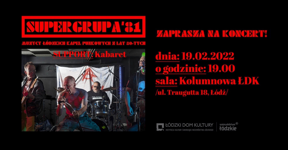 19 lutego w Łódzkim Domu Kultury zagra SUPERGRUPA'81 – zespół, w skład którego wchodzą muzycy, którzy występowali w latach 1980-1981 w łódzkich kapelach punkowych, które zapoczątkowały ten nurt. Support – grupa Kabaret.