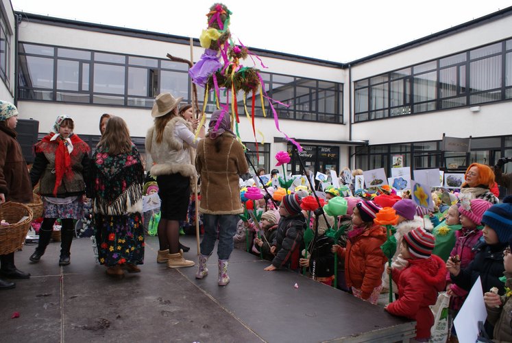 Pierwszą część wypełniły zabawy i konkursy plastyczne przygotowane przez Specjalny Ośrodek Szkolno-Wychowawczy i Środowiskowy Dom Samopomocy w Radomsku dla radomszczańskich przedszkolaków. Dużym zainteresowaniem cieszyły się kiermasze, na których można było kupić kolorowe świąteczne ozdoby, słodkie wypieki i smakołyki kuchni staropolskiej. O godzinie 11.00 rozpoczęła się druga cześć imprezy, na którą Miejski Dom Kultury zaprosił uczniów radomszczańskich szkół podstawowych. Patio MDK zapełniło się kolorowymi zwiastunami wiosny. Były to: bociany, skowronki, jaskółki i kolorowe kwiaty. Program artystyczny o obyczajach witania wiosny zaprezentowała Grupa Teatralna Rekwizytornia Teatr. Uczniowie wzięli udział w happeningu plastycznym, podczas którego przygotowane zostały transparenty na powitanie wiosny oraz konkursie Wiosenne zwiastuny wiosny. Piosenki o wiośnie zaśpiewali uczniowie z Publicznej Szkoły Podstawowej nr 2 w Radomsku. Uczestnicy imprezy, uczniowie z PSP nr 2 i PSP nr 7, na zakończenie imprezy otrzymali słodycze i balony promujące działalność MDK.