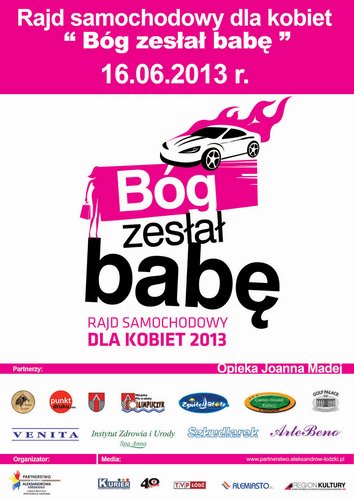 Partnerstwo Na Rzecz Aleksandrowa Łódzkiego zaprasza 16 czerwca na rajd samochodowy dla kobiet "Bóg zesłał babę". Trasa Rajdu biegnie przez Powiat Zgierski i Park Krajobrazowy Wzniesień Łódzkich. Ideą Rajdu jest pokazanie urody i niepowtarzalności regionu, jego wielokulturowej historii i tradycji, a także walorów przyrodniczo-turystycznych.