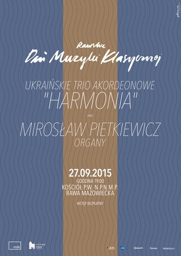 W najbliższą niedzielę, 27 września, o godz. 19.00 w Kościele pw. NPNMP w Rawie Mazowieckiej wystąpi UKRAIŃSKIE TRIO AKORDEONOWE "HARMONIA", które zaprosi nas w świat muzyki J.S.Bacha, A.Vivaldiego, W.A.Mozarta, J.Rossiniego oraz J.Straussa ojca.