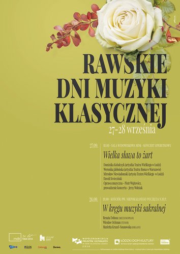 W dniach 27-28 września Miejski Dom Kultury w Rawie Mazowieckiej zaprasza na Rawskie Dni Muzyki klasycznej. W sobotę 27 września o godz. 18.00 w sali widowiskowej odbędzie się koncert pt. „Wielka sława to żart” w wykonaniu artystów Teatru Wielkiego w Łódzi oraz Teatru Roma w Warszawie. Bezpłatne wejściówki do odbioru w MDK od poniedziałku 15 września. Koncert zatytułowany „W kręgu muzyki sakralnej” odbędzie się w niedzielę 28 września o godz. 19.00 w Kościele pw. Niepokalanego Poczęcia NMP w Rawie Mazowieckiej. W wykonaniu między innymi słynnego polskiego tenora Wiesława Ochmana usłyszymy znane utwory muzyki wokalnej i organowej. Wstęp na koncert jest bezpłatny.