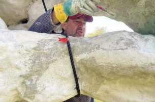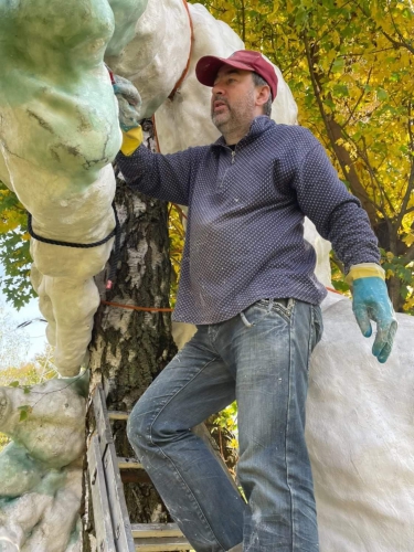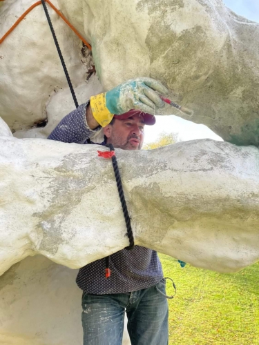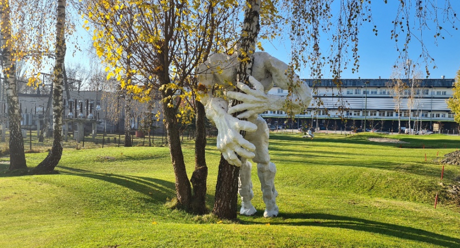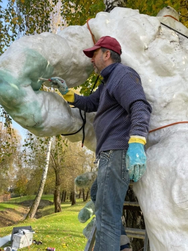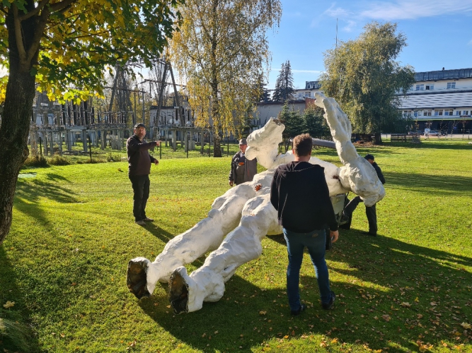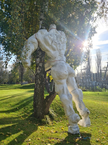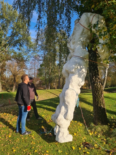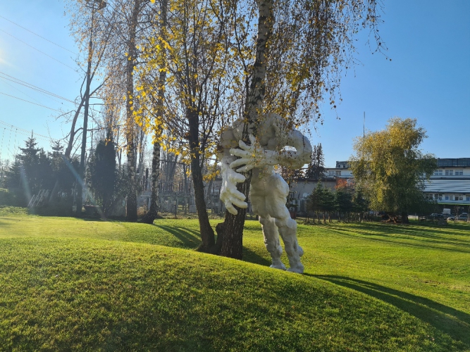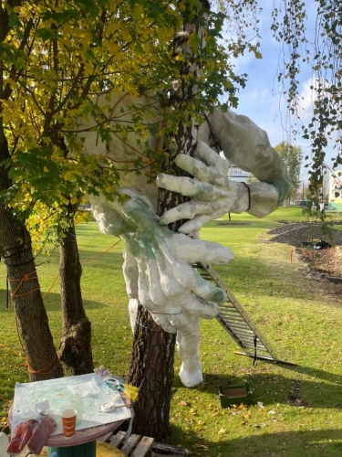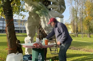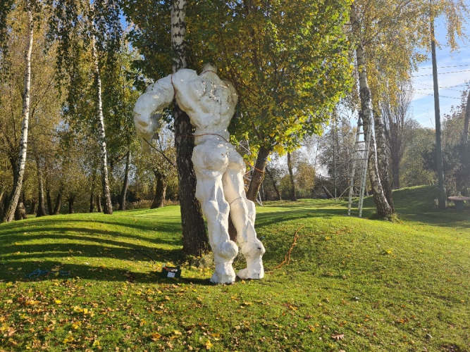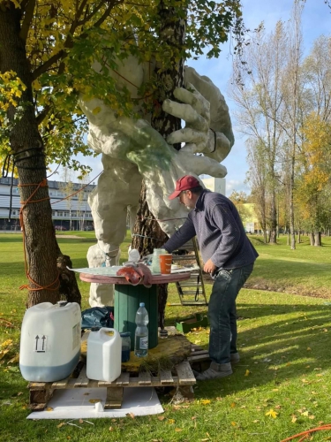 Renowacja rzeźby „Wtulony” Tomasza Koclęgi w Europejskim Parku Rzeźby A&A w Pabianicach.