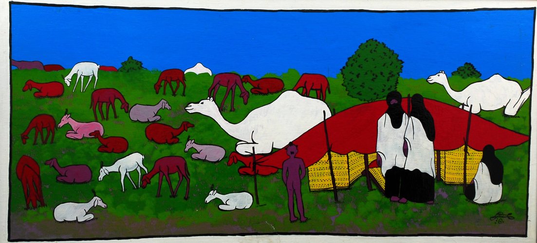 Błękitni Ludzie z Sahary i Sahelu. Rissa Ixa – malarstwo. Obrazy tuareskiego malarza z Nigru z prywatnej kolekcji Adama Rybińskiego. Wernisaż wystawy i spotkanie z Adamem Rybińskim odbędzie się 5 kwietnia o godz. 17.00 w Galerii Starej Łódzkiego Domu Kultury.