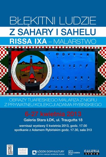 Łódzki Dom Kultury, Polskie Towarzystwo Ludoznawcze – Oddział w Łodzi oraz Fundacja imienia Adama i Beaty Branickich z Wilanowa zapraszają na wernisaż wystawy Błękitni Ludzie z Sahary i Sahelu. Rissa Ixa – malarstwo. Obrazy tuareskiego malarza z Nigru z prywatnej kolekcji Adama Rybińskiego oraz na spotkanie z Adamem Rybińskim, etnologiem, znawcą kultury Tuaregów.