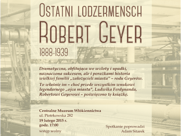 To właśnie im – choć przede wszystkim wnukowi legendarnego ojca miasta, Ludwika Ferdynanda, Robertowi Geyerowi – Przemysław Waingertner poświęcił swoją książkę, o której opowie 19 lutego 2015 r. o godzinie 17:00 w Białej Fabryce Geyera (ul. Piotrkowska 282).
