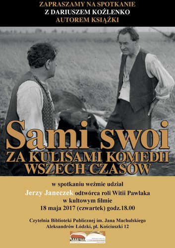 Biblioteka Publiczna im. Jana Machulskiego w Aleksandrowie Łódzkim 18 maja o godz.18.00 zaprasza na spotkanie z Dariuszem Koźlenką, autorem książki „Sami swoi. Za kulisami komedii wszech czasów”. W spotkaniu weźmie udział Jerzy Janeczek - odtwórca roli Witii Pawlaka w kultowym filmie. Będzie mozliwość kupienia książki i zdobycia autografów od zaproszonych gości.