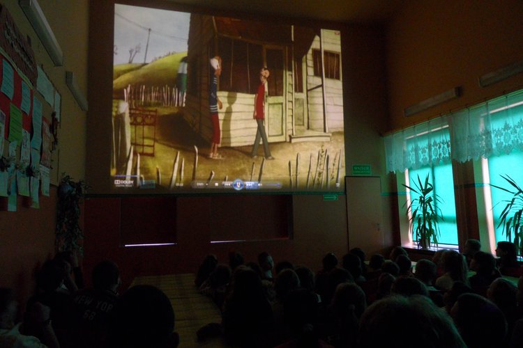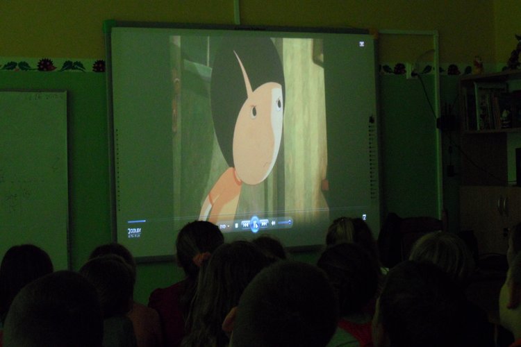Jest to animowana podróż do świata, w którym czytanie jest umiejętnością na wagę złota. Dzięki książce ożywają postacie znane każdemu czytelnikowi. Doskonała animacja oraz niezwykła tematyka filmu sprawiają, że nie jest on tylko zabawą, ale także nauką nie tylko dla najmłodszych... W dniach 1-6 czerwca odbyło się 5 projekcji filmu, a obejrzało go 185 dzieci. Zainteresowanie filmem było ogromne, dzieci z zaciekawieniem śledziły przygody Nathaniela. Po obejrzeniu filmu bardzo chętnie brały udział w dyskusji. Analizowano postawę głównego bohatera, swoją znajomość postaci bajkowych oraz rolę książki w życiu każdego człowieka. Dzieci zgodnie uznały iż książki trzeba szanować, ponieważ przenoszą w świat marzeń, a marzenia są cenne. Spośród przygotowanych kolorowanek, dzieci wybrały swoich ulubionych bohaterów z bajek i wyraziły chęć przeczytania nieznanych im jeszcze pozycji książkowych. W zamian za stworzenie klimatu kina, bibliotekarki otrzymały gromkie brawa!!!