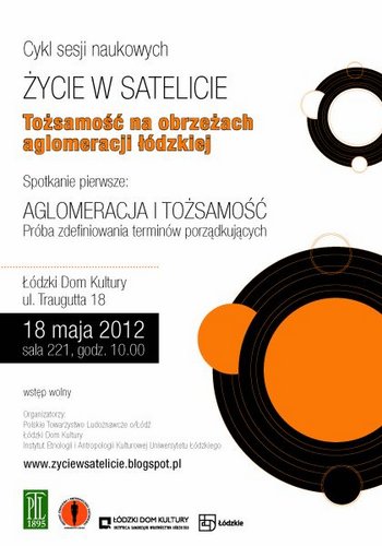 Polskie Towarzystwo Ludoznawcze o/Łódź, Łódzki Dom Kultury, Instytut Etnologii i Antropologii Kulturowej UŁ zapraszają do udziału w sesji naukowej pn. "Życie w satelicie. Tożsamość na obrzeżach aglomeracji łódzkiej". Spotkanie odbędzie się 18 maja w ŁDK, sali 221, od godz. 10.