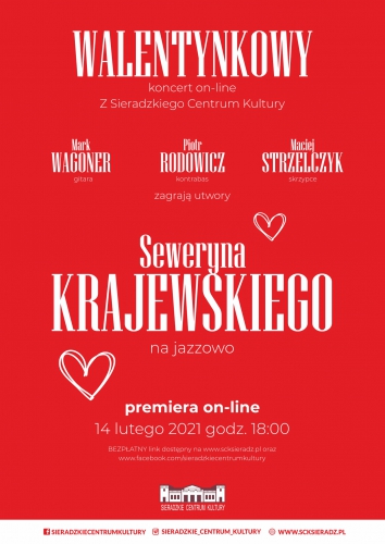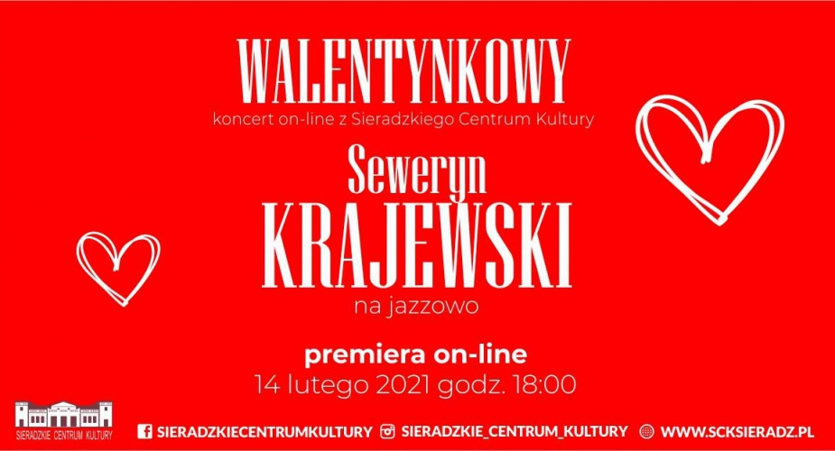 Sieradzkie Centrum Kultury zaprasza na Walentynkowy koncert online, na którym będziemy mogli posłuchać przebojów Seweryna Krajewskiego w jazzowej aranżacji.