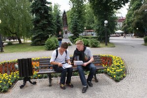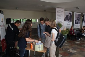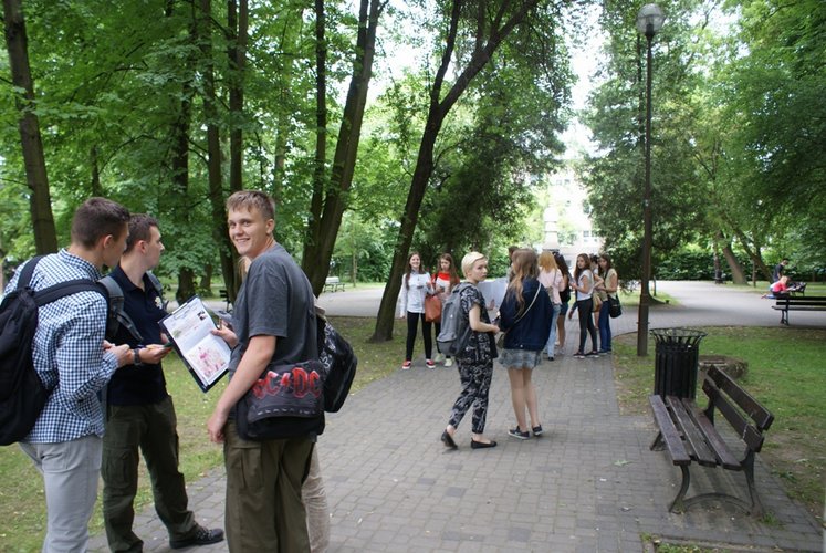 W grze miejskiej „Śladami Braci Różewiczów”, która odbyła się 11 czerwca 2015 w ramach Różewicz Open Festiwal 2015 wzięły udział 63 osoby. Zadaniem uczestników (podzielonych na 21 trzyosobowych grup) było odwiedzenie punktów kontrolnych, rozmieszczonych w centrum miasta i wykonanie zadań poleconych przez instruktorów. Punkty z zadaniami znajdowały się m.in. w Parku Świętojańskim, na Placu 3 Maja, przy Muzeum Regionalnym im. S.Sankowskiego, na skwerku przy Urzędzie Miasta Radomsko, zadania były także zakodowane w kodach QR. Wśród licznych poleceń było m.in. ułożenie kompletnej fotografii z maleńkich fragmentów zdjęcia (matki Braci Różewiczów) i odpowiedzenie na pytania dotyczące osoby ze zdjęcia, wymienienie Honorowych Obywateli Miasta Radomska, scharakteryzowanie miejsc znajdujących się w różnych zakątkach Polski a związanych z Braćmi Różewiczami (na podstawie załączonych fotografii) czy odgadnięcie błędów w wierszu Tadeusza Różewicza. I miejsce (3 x tablet firmy Samsung) zajęła grupa nr 9 w składzie: Weronika Kowalik, Magdalena Makowska i Anna Makowska, II (3 x odtwarzacz MP4) miejsce przypadło w udziale grupie nr 5, którą tworzyli: Hubert Pawłowski, Marta Musiał i Lucyna Sikorska, III miejsce (3 x pendrive 64 GB) zajęła drużyna nr 4: Kacper Drogosz, Mateusz Ozga i Mikołaj Grabarczyk. Upominki (gadżety elektroniczne), wylosowane wśród wszystkich uczestników trafiły do Igora Rabendy, Karoliny Marteli i Pauliny Kowalczyk. Grę miejską „Śladami Braci Różewiczów” opracowała i przygotowała firma „Tropem Przygody” z Kielc Dsc02981 Piotr Rybak info@mdkradomsko.pl