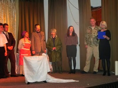 Perfekcyjna gra aktorska i reżyseria, wspaniałe dekoracje i muzyka sprawiły, iż wieluńscy teatromani poczuli się jak w prawdziwej Świątyni Melpomeny. W spektaklu wystąpili: Marek Berger, Agnieszka Pinkosz, Barbara Kucharska, Mateusz Wieczorek, Natalia Pinkosz, Karolina Kula, Szymon Pecela, Ewa Głogowska, Bogumiła Gońda i Filip Dworaczyk.