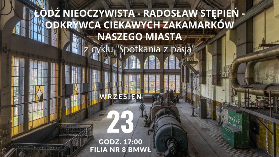 23 września w filii nr 8 Biblioteki Miejskiej w Łodzi odbędzie się kolejne wydarzenie z cyklu "Spotkania z pasją". Tym razem gościem będzie Radosław REDMAN Stępień – fotograf, założyciel fanpage Urban Explorer Łódź.