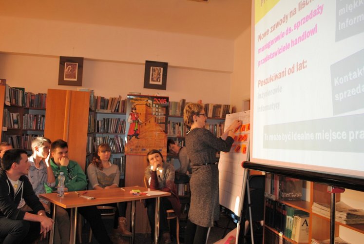 W rozmowie z tym młodym, inspirującym profesjonalistą, poznali jego drogę do sukcesu jakim jest własna firma. Poznali także zawody, na które prognozowane jest zapotrzebowanie w przyszłości oraz wzięli udział w quizie, który umożliwi im zorientowanie się w aktualnej sytuacji i trendach na rynku pracy. W spotkaniu wzięły udział dwie klasy w sumie liczące 41 osób.