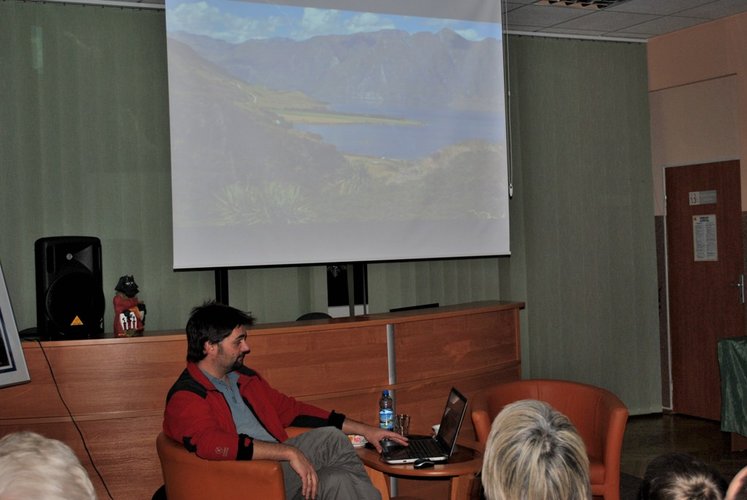 Spotkanie z przyciągnęło wielu miłośników podróży. Podróżnik opowiadał o kolejnych etapach podróży podczas której wraz z żoną podziwiali atrakcje wyspy południowej a później również część wyspy północnej. Codziennie w nowym miejscu – podziwiali klifowe wybrzeże, błękitne jeziora osnute porannymi mgłami lub przechodzili przez rwącą rzeką, spali na parkingu z widokiem na ośnieżone szczyty. Zebranych bardzo zainteresował pokaz slajdów. Przyciągały uwagę bajkowe nowozelandzkie krajobrazy, gdzie obok ukwieconych gór pojawiały się różnobarwne jeziora i gejzery. Pobudzały one wyobraźnię, szczególnie że towarzyszyła im muzyka z „Władcy Pierścieni", przy kręceniu którego w wykorzystano właśnie krajobrazy Nowej Zelandii.