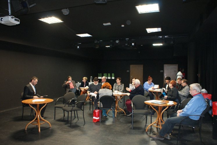 Zgromadzonych gości przywitali – Dyrektor Elżbieta Kwiatkowska i Maciej Sygitowicz, kierownik Kina Pasja w MDK, a następnie zaproponowali spacer po placówce. Po zwiedzaniu przyszedł czas na robocze spotkanie „kiniarzy”. Rozpoczęliśmy od prezentacji oferty Wytwórni Filmów Oświatowych w Łodzi, która przygotowała dla kin w regionie pakiet zrekonstruowanych cyfrowo filmów produkcji WFO. Każde kino będzie mogło taki pakiet zamówić i pokazać widzom w swoim kinie. Wśród niezliczonej liczby filmów są prace wybitnych polskich reżyserów, którzy swoje pierwsze kroki stawiali kręcąc filmy oświatowe. Następnie pracownice Działu Filmowego Łódzkiego Domu Kultury – Ewa Bobińska i Ewa Jagiełło – przedstawiły założenia projektu „Nieme kino w drodze – udźwiękowione projekcje filmowe w województwie łódzkim”, w którym będą brały udział kina należące do Sieci. Projekt zakłada projekcje 7 filmów niemych wybranych z klasyki kina z muzyką graną na żywo przez zespoły rockowe. Kolejnym punktem spotkania była dyskusja o problemach kin i ich relacjach z dystrybutorami. Jest to odwieczny już problem, stare sprawy nie znajdują rozwiązania, a pojawiają się kolejne np. wprowadzenie abonamentów w sieciach multipleks czy niezapowiedziane kontrole dystrybutorskie. Ostatnim punktem tego roboczego spotkania był panel dyskusyjny pn. „Kino sercem społeczności lokalnej” przygotowany przez panią Elizę Gryszko z Towarzystwa Inicjatyw Twórczych „Ę”. Założeniem warsztatów było zapoznanie prowadzących kina z działaniami pomagającymi aktywizować społeczność lokalną, a co za tym idzie umożliwiającymi przyciągnięcie widzów do kin.