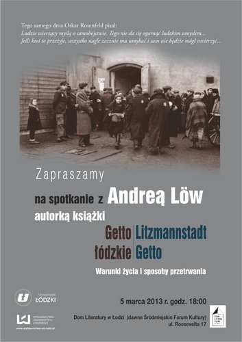 Wydawnictwo Uniwersytetu Łódzkiego zaprasza 5 marca o godz. 18.00 na spotkanie z Andreą Löw, autorką książki "Getto łódzkie. Litzmannstadt Getto. Warunki życia i sposoby przetrwania." w Domu Literatury w Łodzi.